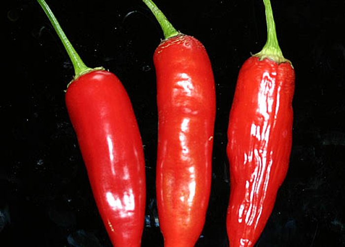 Classified as C. baccatum. Ripens to red, long/tapered pods. Clocks in at 10,000–50,000 SHU — solid heat — enough to make you pay attention. Roots trace to South America.Landrace (Bred by Peru/Chile). Aji varieties are the backbone of South American pepper culture, particularly in Peru, Bolivia, and Ecuador.