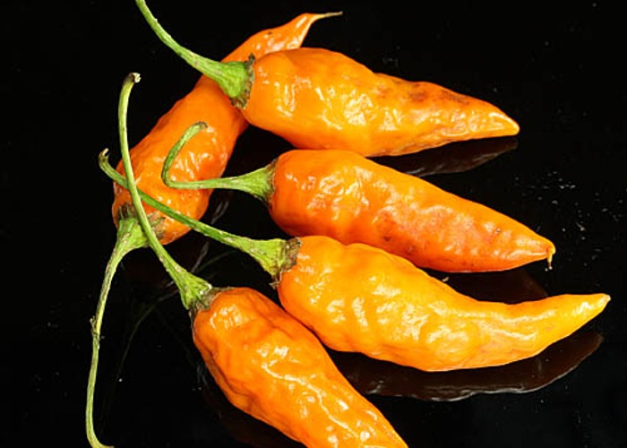 Classified as C. chinense. Ripens to red, long/tapered pods. Heat sits around 10,000–50,000 SHU — solid heat — enough to make you pay attention. Originates from South America. Aji varieties are the backbone of South American pepper culture, particularly in Peru, Bolivia, and Ecuador.