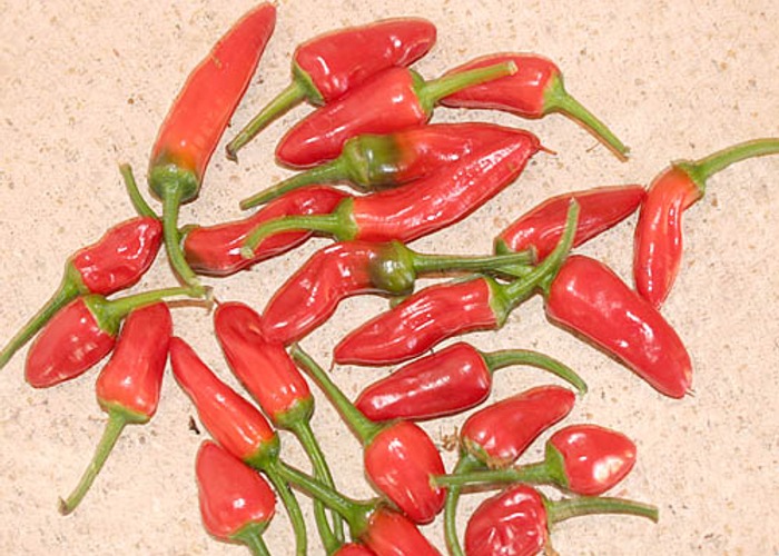 A C. annuum variety. Ripens to red, standard tapered pods. Heat sits around 60,000–80,000 SHU — hot, with a lingering burn. Also listed as Apache Red.