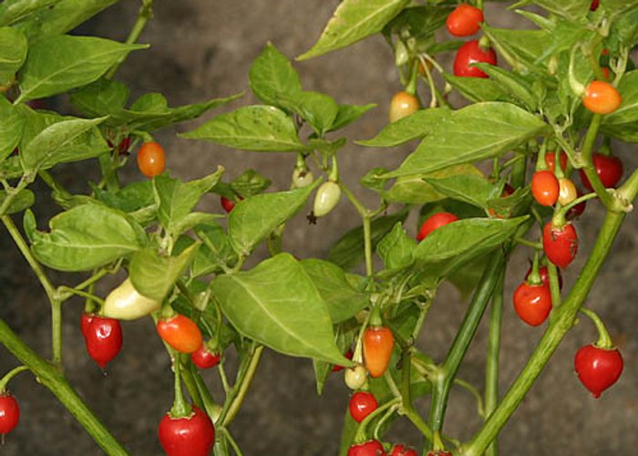 A chinense type. Ripens to red, habanero-type pods. Packs 80,000–250,000 SHU (very hot, not for the faint of heart).