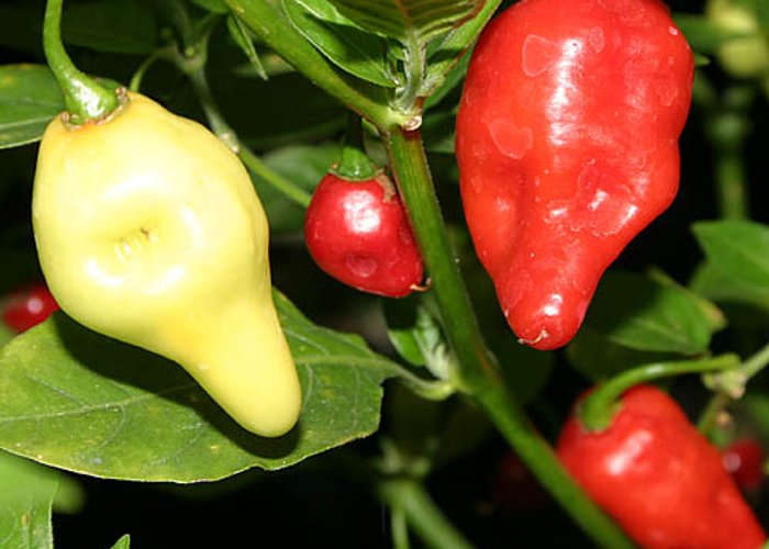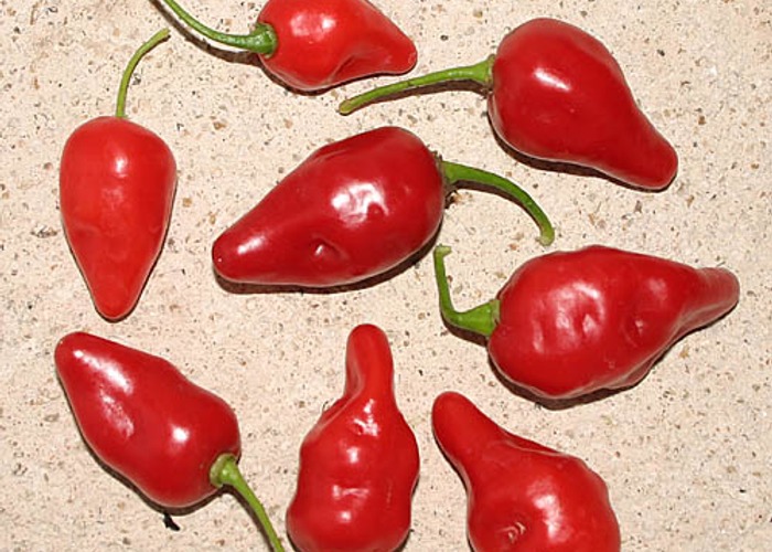 Classified as C. chinense. Ripens to red, habanero-type pods. Heat sits around 80,000–250,000 SHU — very hot, not for the faint of heart.