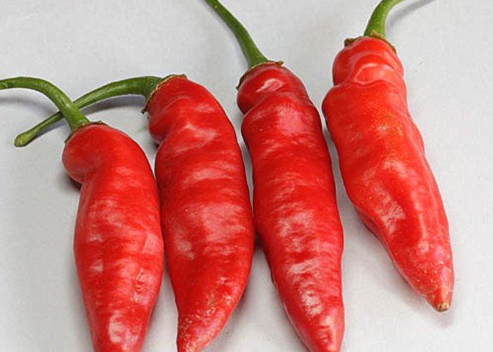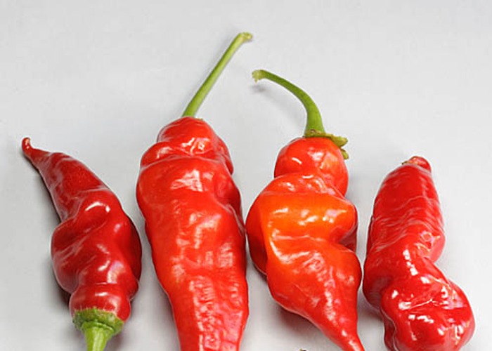A C. chinense variety. Ripens to red, habanero-type pods. Heat sits around 80,000–250,000 SHU — very hot, not for the faint of heart.
