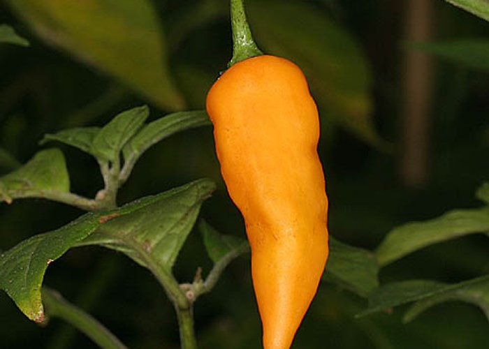 A member of the C. chinense group. Ripens to red, habanero-type pods. Heat sits around 80,000–250,000 SHU — very hot, not for the faint of heart.