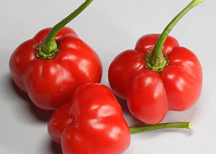 A member of the C. chinense group. Ripens to red, habanero-type pods. Clocks in at 80,000–250,000 SHU — very hot, not for the faint of heart.