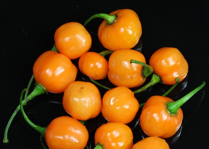 A chinense type. Ripens to yellow, habanero-type pods. Rates 80,000–250,000 SHU, which means very hot, not for the faint of heart.