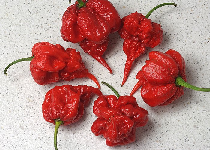A chinense type. Ripens to red, habanero-type pods. Packs 2,480,000–2,480,000 SHU (brutally hot, deep into superhot range).