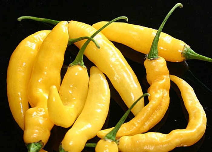 A chinense type. Ripens to red, habanero-type pods. Heat sits around 80,000–250,000 SHU — very hot, not for the faint of heart.