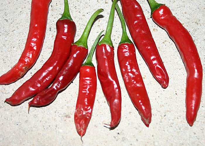 A member of the C. annuum group. Ripens to red, standard tapered pods. Rates 2,000–10,000 SHU, which means moderate heat with a noticeable bite.