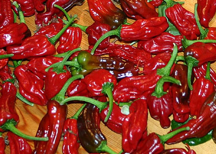 A member of the C. annuum group. Ripens to red, standard tapered pods. Rates 2,000–10,000 SHU, which means moderate heat with a noticeable bite.