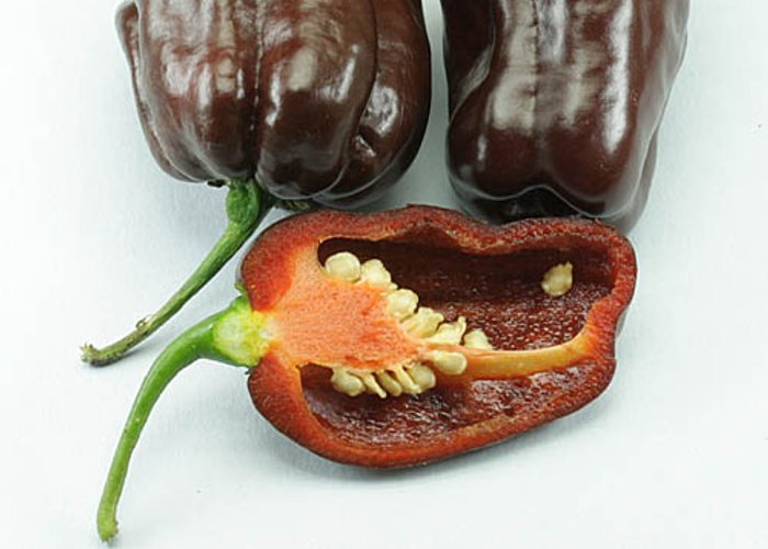 Classified as C. chinense. Ripens to black, habanero-type pods. Clocks in at 80,000–250,000 SHU — very hot, not for the faint of heart.