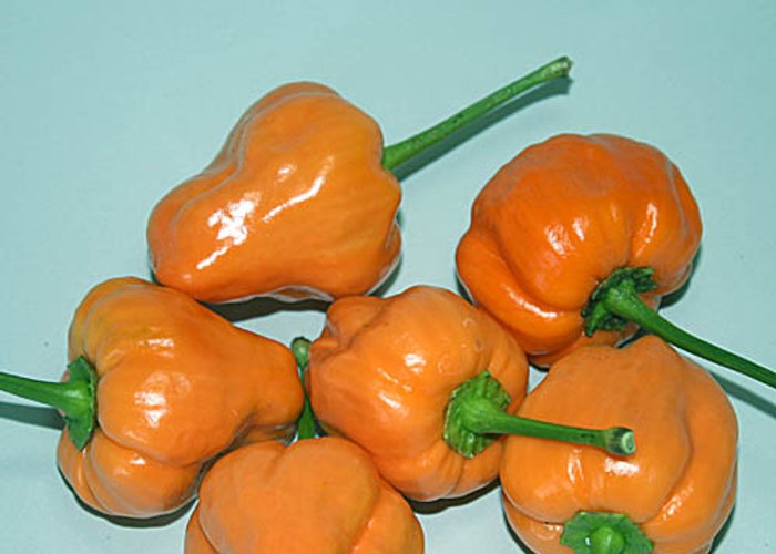 This C. annuum cultivar. Ripens to peach/salmon/pastel, standard tapered pods. Packs 2,000–10,000 SHU (moderate heat with a noticeable bite).