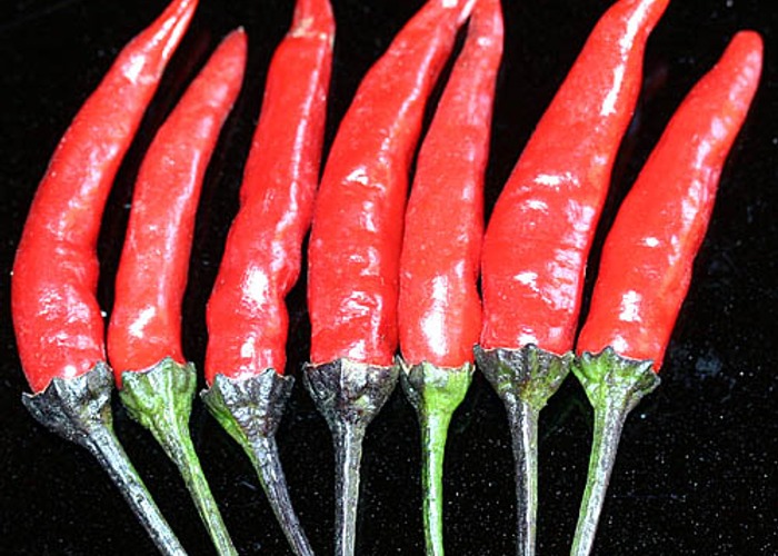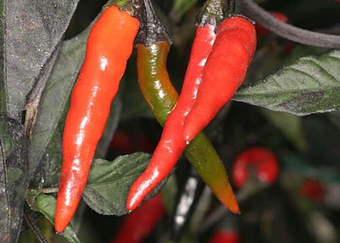 This C. annuum cultivar. Ripens to purple, standard tapered pods. Rates 2,000–10,000 SHU, which means moderate heat with a noticeable bite.