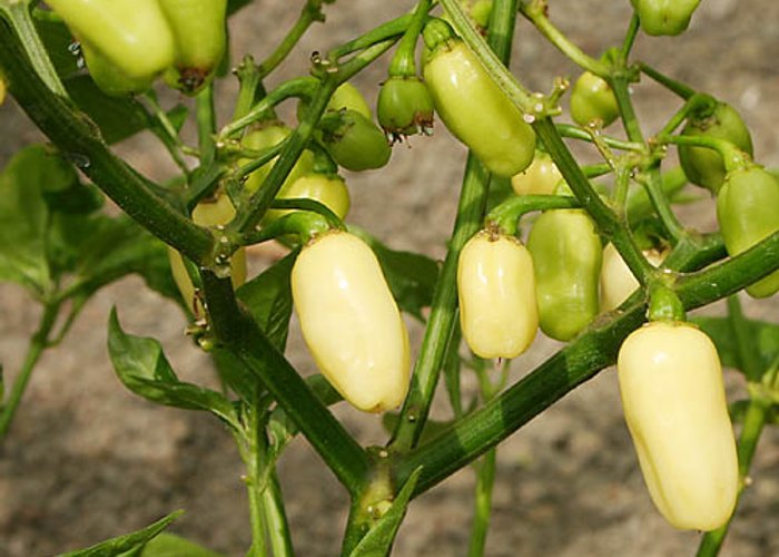 A C. baccatum variety. Ripens to white/cream, long/tapered pods. Rates 8,000–25,000 SHU, which means solid heat — enough to make you pay attention.