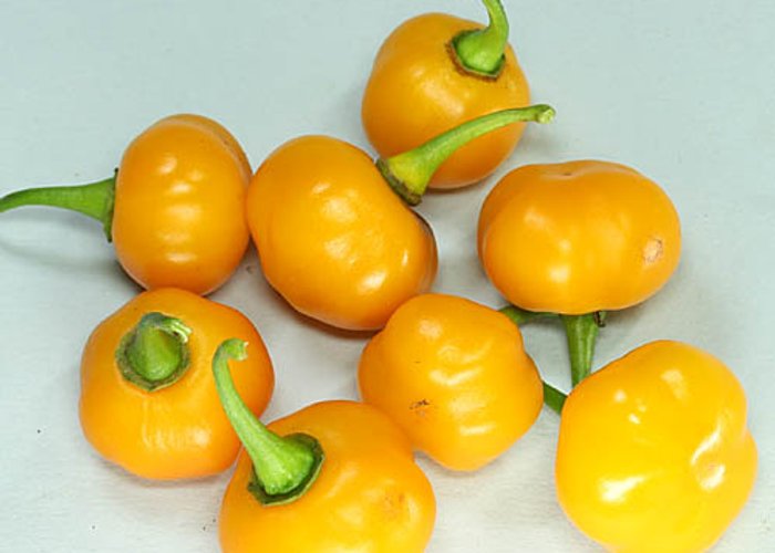 A member of the C. chinense group. Ripens to red, habanero-type pods. Heat sits around 80,000–250,000 SHU — very hot, not for the faint of heart.