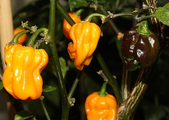 This C. chinense cultivar. Ripens to red, round/tomato/cherry/marbles pods. Rates 30,000–80,000 SHU, which means hot, with a lingering burn. Roots trace to Brazil. Also listed as Pimenta Kathumby Red.