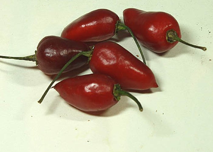 A member of the C. chinense group. Ripens to red, round/tomato/cherry/marbles pods. Packs 30,000–80,000 SHU (hot, with a lingering burn). Associated with Brazil.
