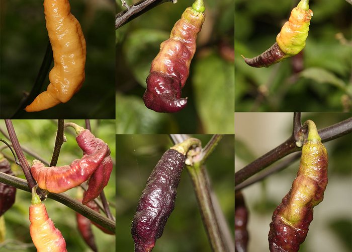This C. chinense cultivar. Ripens to pink, round/tomato/cherry/marbles pods. Packs 30,000–80,000 SHU (hot, with a lingering burn). From Brazil.