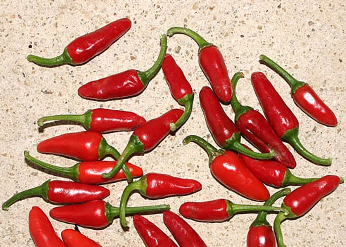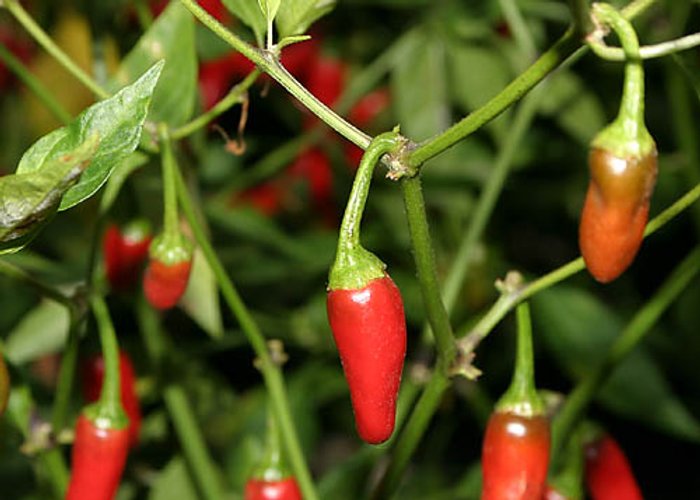 A C. annuum variety. Ripens to red, standard tapered pods. Packs 2,000–10,000 SHU (moderate heat with a noticeable bite).