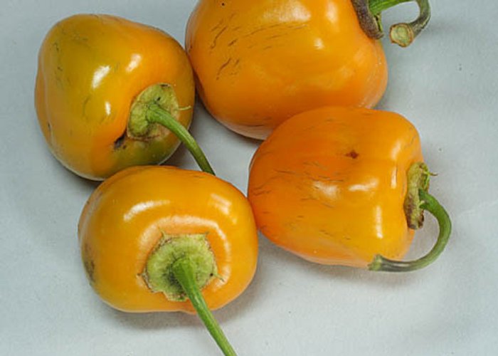 A pubescens type. Ripens to orange, apple/blunt bell pods, with matte/powdery. Packs 30,000–100,000 SHU (hot, with a lingering burn). Roots trace to Andes (Peru/Bolivia). Parentage: Ancient domesticate. Part of the Rocoto/Manzano/Locoto family, the cold-hardy Andean pepper with ancient roots.