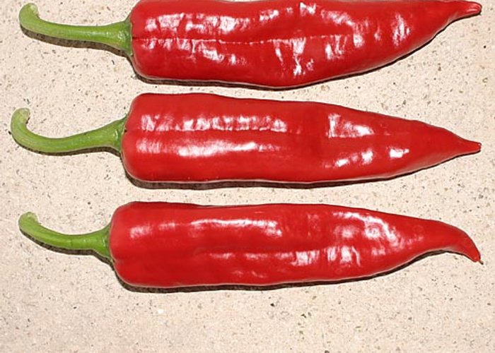 A annuum type. Ripens to red, standard tapered pods. Clocks in at 5,000–7,000 SHU — moderate heat with a noticeable bite. From the work of NMSU.