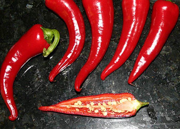 Classified as C. annuum. Ripens to crimson/burgundy, standard tapered pods. Clocks in at 1,000–5,000 SHU — mild heat that most people can handle easily.