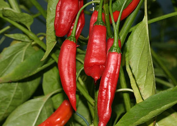 A C. baccatum variety. Ripens to peach/salmon/pastel, long/tapered pods, with striped. Clocks in at 15,000–30,000 SHU — solid heat — enough to make you pay attention. Originates from Wales, UK (bred). From the work of Chris Fowler (WelshChilli, Wales). Parentage: C. baccatum selection.