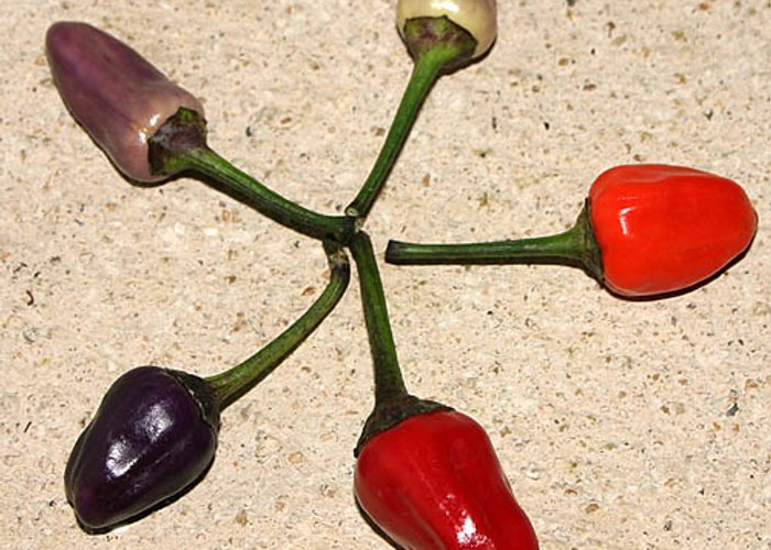 Tepin Orange is a C. annuum var. glab variety from Mexico / SW United States. Pods ripens to orange, with round/tomato/cherry/marbles pods. Rated hot, ranging from 50,000 to 100,000 SHU. Associated with SW US / N. Mexico (wild).