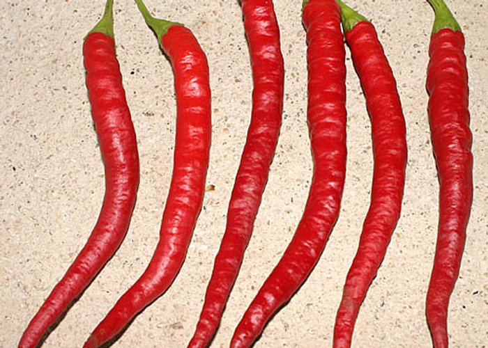 Classified as C. annuum. Ripens to red, standard tapered pods. Clocks in at 3,000–15,000 SHU — moderate heat with a noticeable bite. From Turkey. From the work of Turkey (traditional).