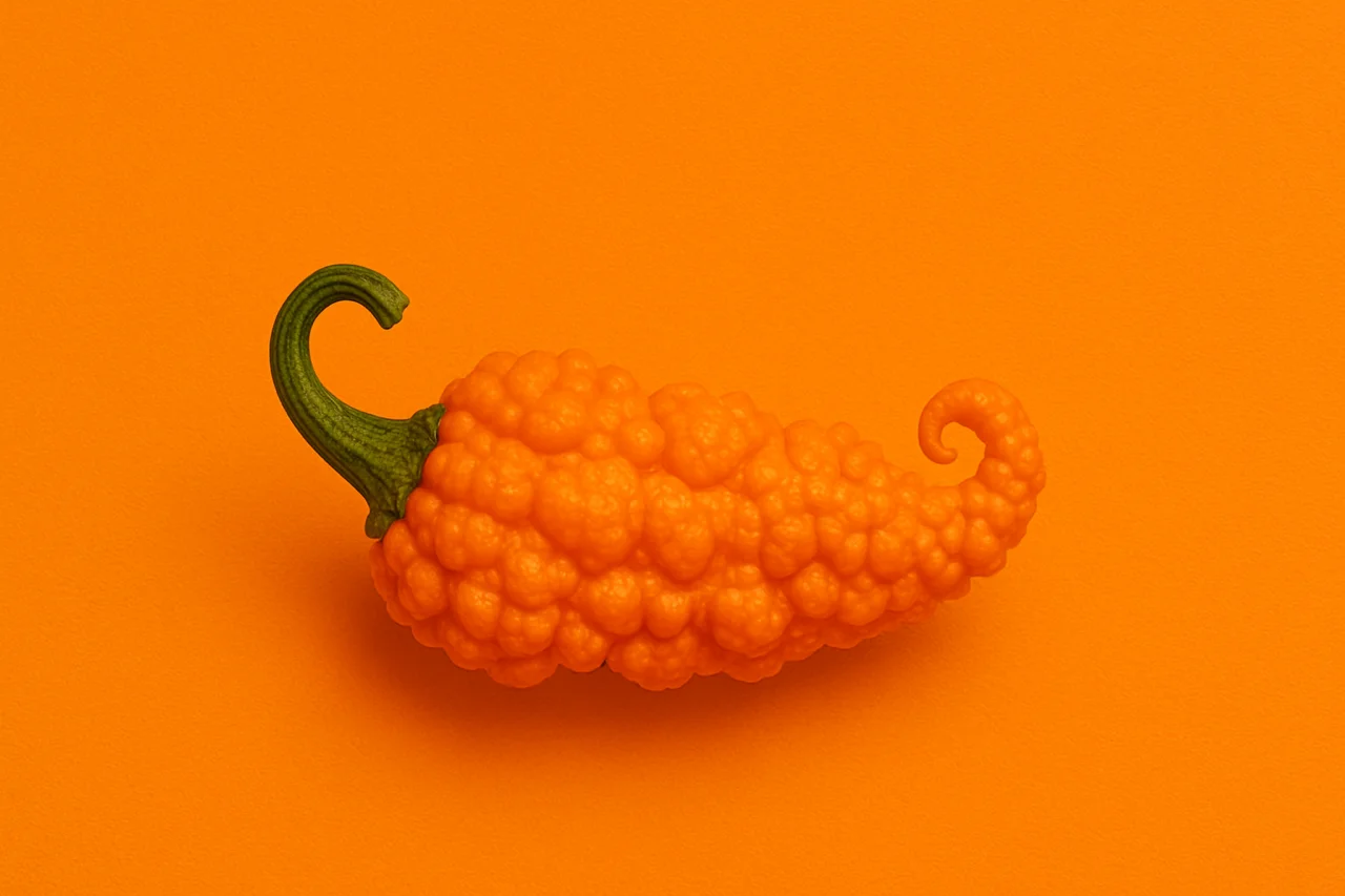 A C. chinense variety. Ripens to white/cream, habanero-type pods, with wrinkled. Heat sits around 400,000–1,000,000 SHU — extremely hot, in superhot territory. From Trinidad & Tobago. From the prolific Trinidadian 7 Pot gene pool, which continues to produce new selections and crosses.