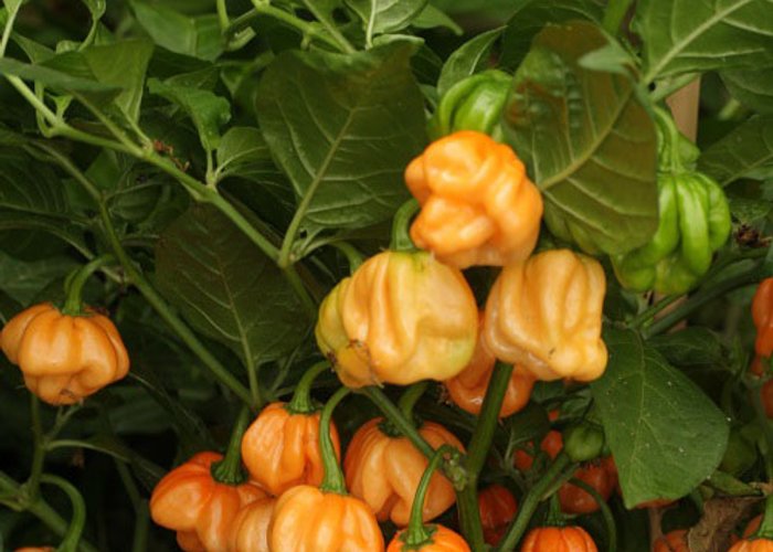 A member of the C. chinense group. Ripens to red, habanero-type pods. Rates 100,000–300,000 SHU, which means very hot, not for the faint of heart.