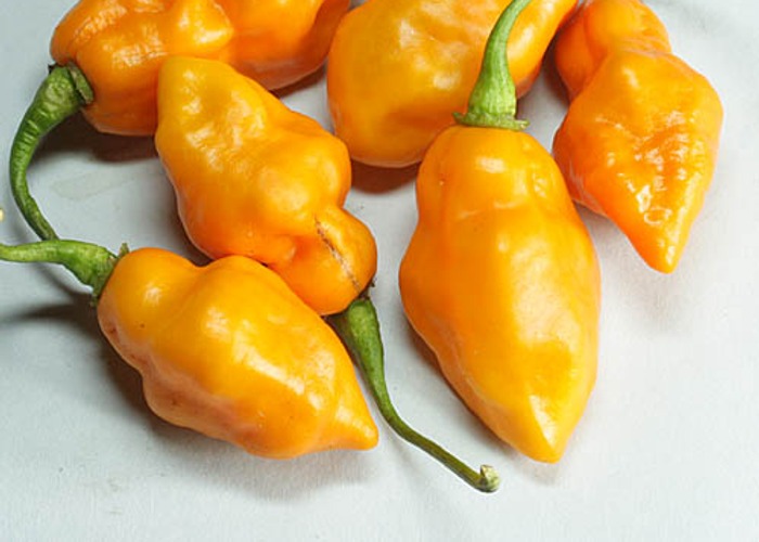 A member of the C. chinense group. Ripens to red, habanero-type pods. Packs 80,000–250,000 SHU (very hot, not for the faint of heart).
