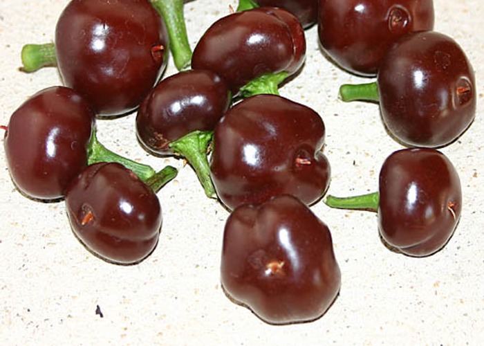A annuum type. Ripens to red, round/tomato/cherry/marbles pods. Packs 2,500–5,000 SHU (mild heat that most people can handle easily). Cherry-type peppers are round, squat, and thick-walled — perfect for pickling and stuffing.
