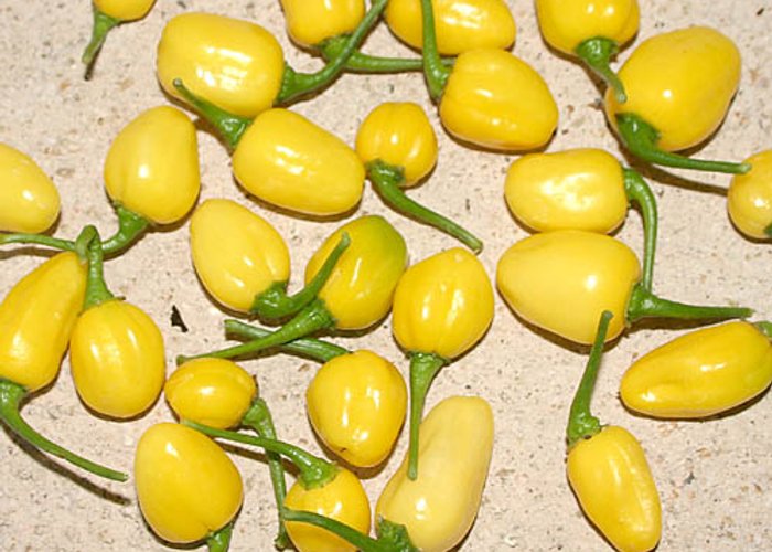 This C. baccatum cultivar. Ripens to red, pequin/small bullet pods. Heat sits around 30,000–200,000 SHU — very hot, not for the faint of heart.