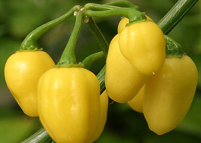 This C. chinense cultivar. Ripens to red, pequin/small bullet pods. Heat sits around 30,000–200,000 SHU — very hot, not for the faint of heart.