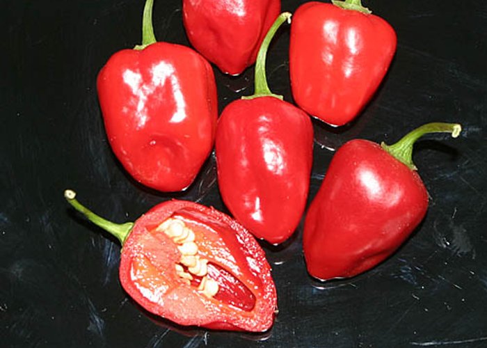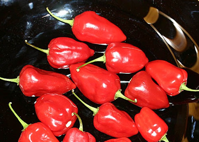 Classified as C. chinense. Ripens to red, long/tapered pods. Packs 80,000–250,000 SHU (very hot, not for the faint of heart).