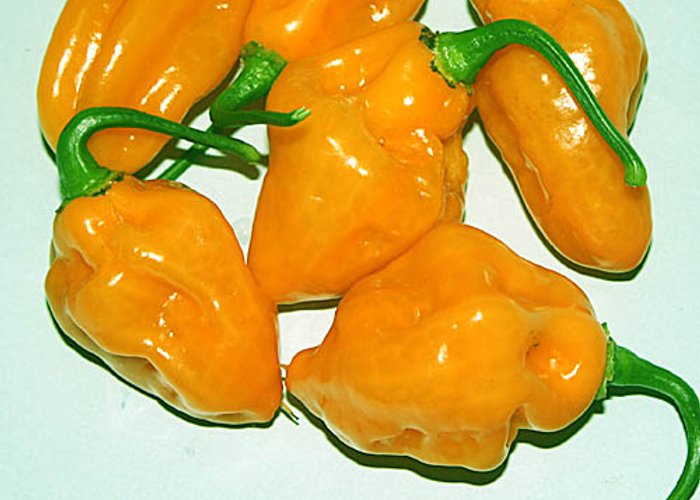 A member of the C. chinense group. Ripens to black, habanero-type pods. Rates 100,000–350,000 SHU, which means very hot, not for the faint of heart. From Yucatán, Mexico. Part of the C. chinense family that includes habaneros, one of the most aromatic pepper groups.