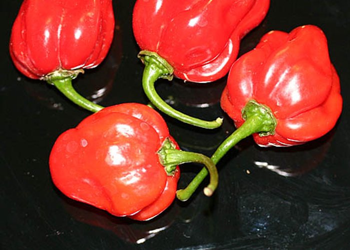 A member of the C. chinense group. Ripens to black, habanero-type pods. Clocks in at 100,000–350,000 SHU — very hot, not for the faint of heart. From Yucatán, Mexico. Part of the C. chinense family that includes habaneros, one of the most aromatic pepper groups.