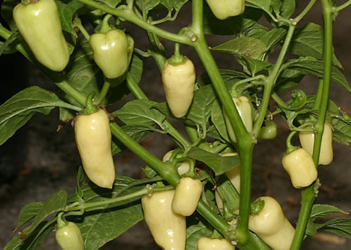 A chinense type. Ripens to white/cream, habanero-type pods. Clocks in at 80,000–250,000 SHU — very hot, not for the faint of heart.