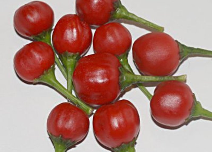 This C. chinense cultivar. Ripens to red, habanero-type pods. Packs 80,000–250,000 SHU (very hot, not for the faint of heart).